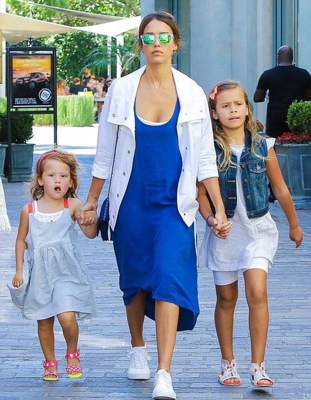 Джессика Альба была замечена воскресным днем на улицах Лос-Анджелеса во время прогулки со своими дочерьми - трехлетней Хавен и семилетней Онор.