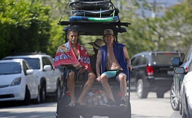 Звездные серфингисты Шон Пенн, Джерард Батлер и Оуэн Уилсон в Малибу