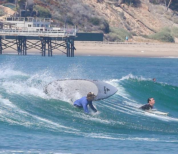 Воскресным утром на пляже в Малибу высадился звездный десант любителей серфинга. Его посетители могли наблюдать за катанием на доске Шона Пенна, Джерарда Батлера и Оуэна Уилсона.