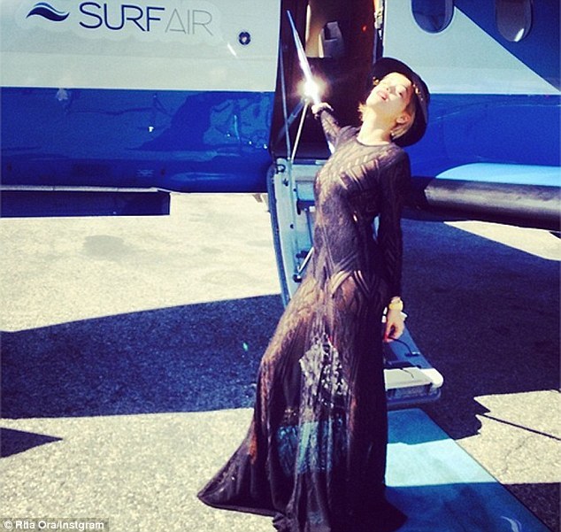 Рита Ора прибыла на фестиваль на частном самолете, о чем сама похвасталась через Instagram.