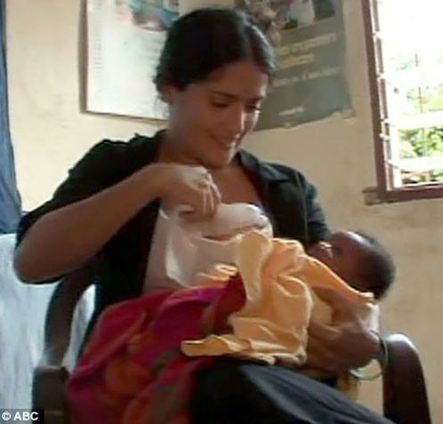 Сальма Хайек вообще героическая женщина, она кормила грудью не только дочь, но и чужого ребенка. Родив дочь Валентину, она направилась с миссией доброй воли в Сьерра-Лионе. Там у одной из женщин из-за истощения пропало молоко, и тогда актриса решила сама покормить ее ребенка грудью. Позже она сказала, что надеется ее дочь была бы рада поделиться своей едой. Вообще она хочет, чтобы Валентина выросла добрым и отзывчивым человеком, который всегда готов придти на помощь.