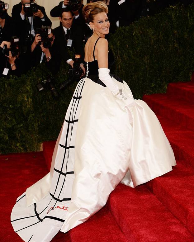 Сара Джессика Паркер в черно-белом платье Оскар де ла Рента.