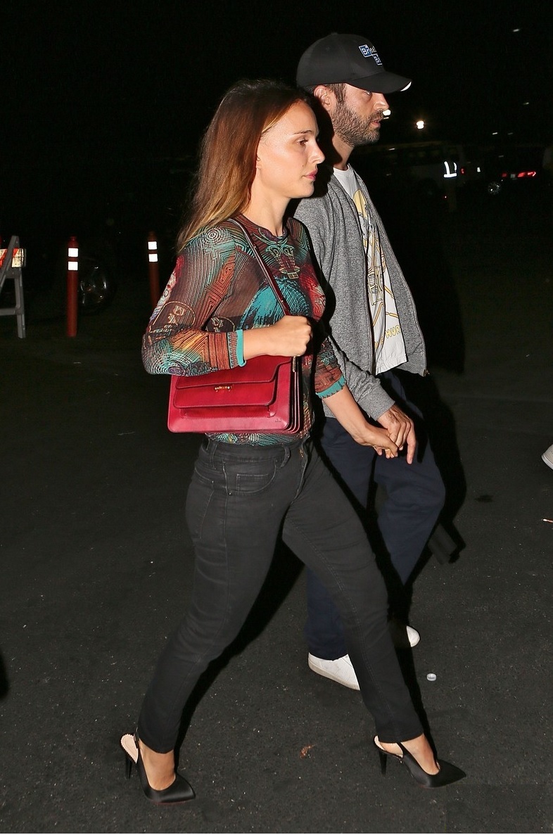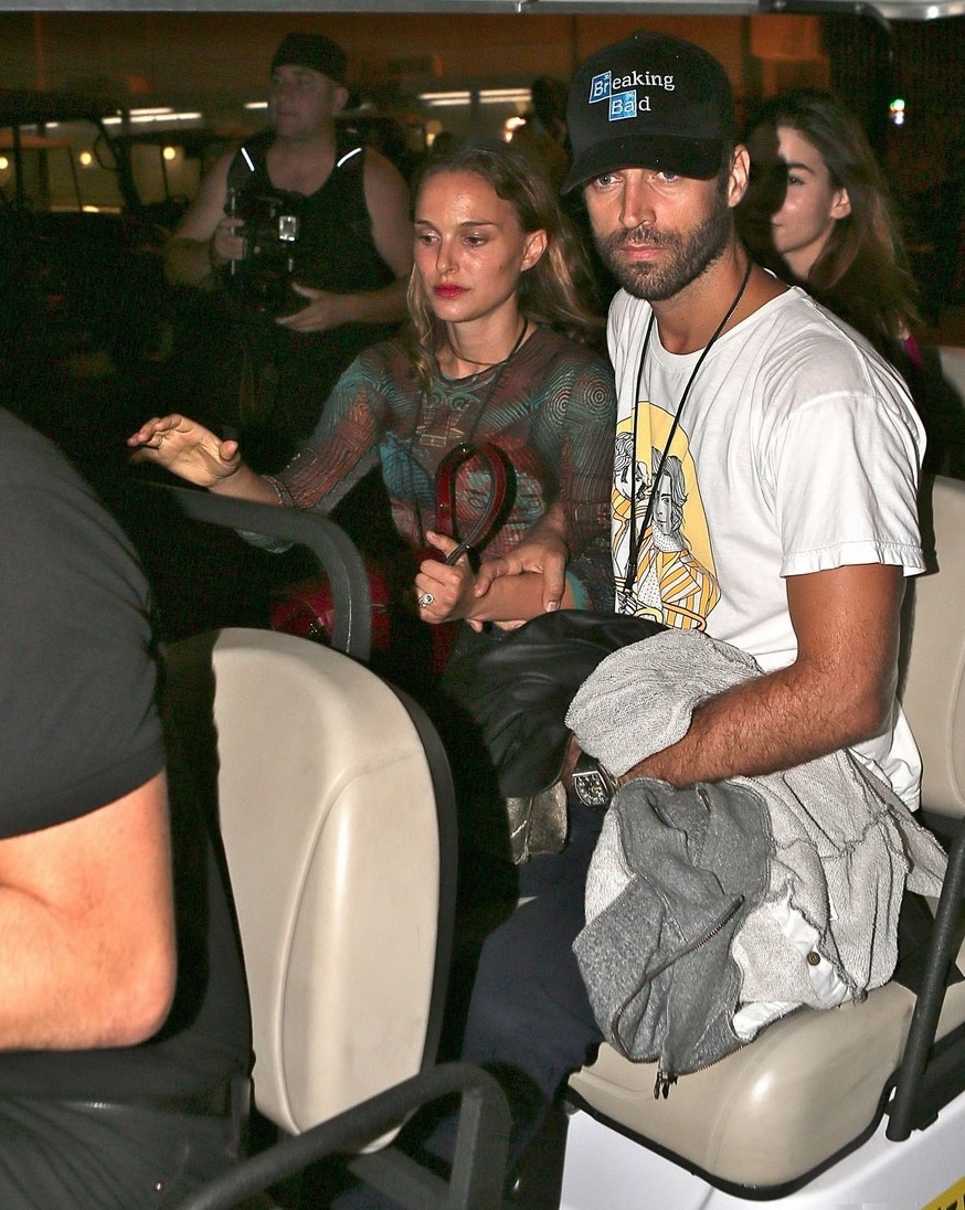 Натали Портман была замечена, направляясь в Роуз Боул с мужем Бенджамином Мильпье на концерт Бейонсе и Джей-Зи, что проходил в рамках "On the Run" тура в субботу вечером в Пасадене, Калифорния.