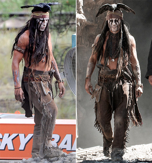 Джонни Депп с дублером на съемках "Одинокий рейнджер".
