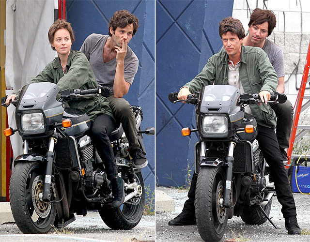 Дакота Джонсон и Пенн Бэджли и их дублеры на съемках фильма "Цимбелин".