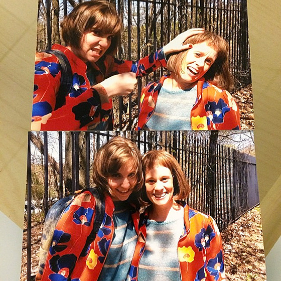 Лена Данхэм со своим дублерам на съемках сериала "Девочки".