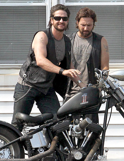 Джерард Батлер со своим дублером на съемках фильма "Проповедник с пулеметом".