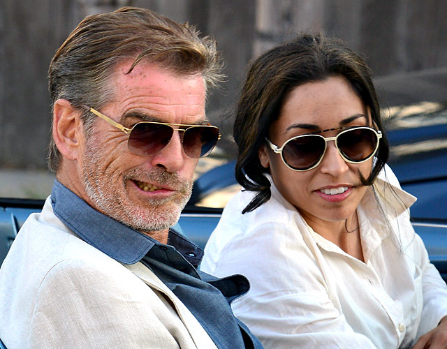 Пирс Броснана с дублершей Сальмы Хайек на съемках фильма "Как заниматься любовью по-английски".